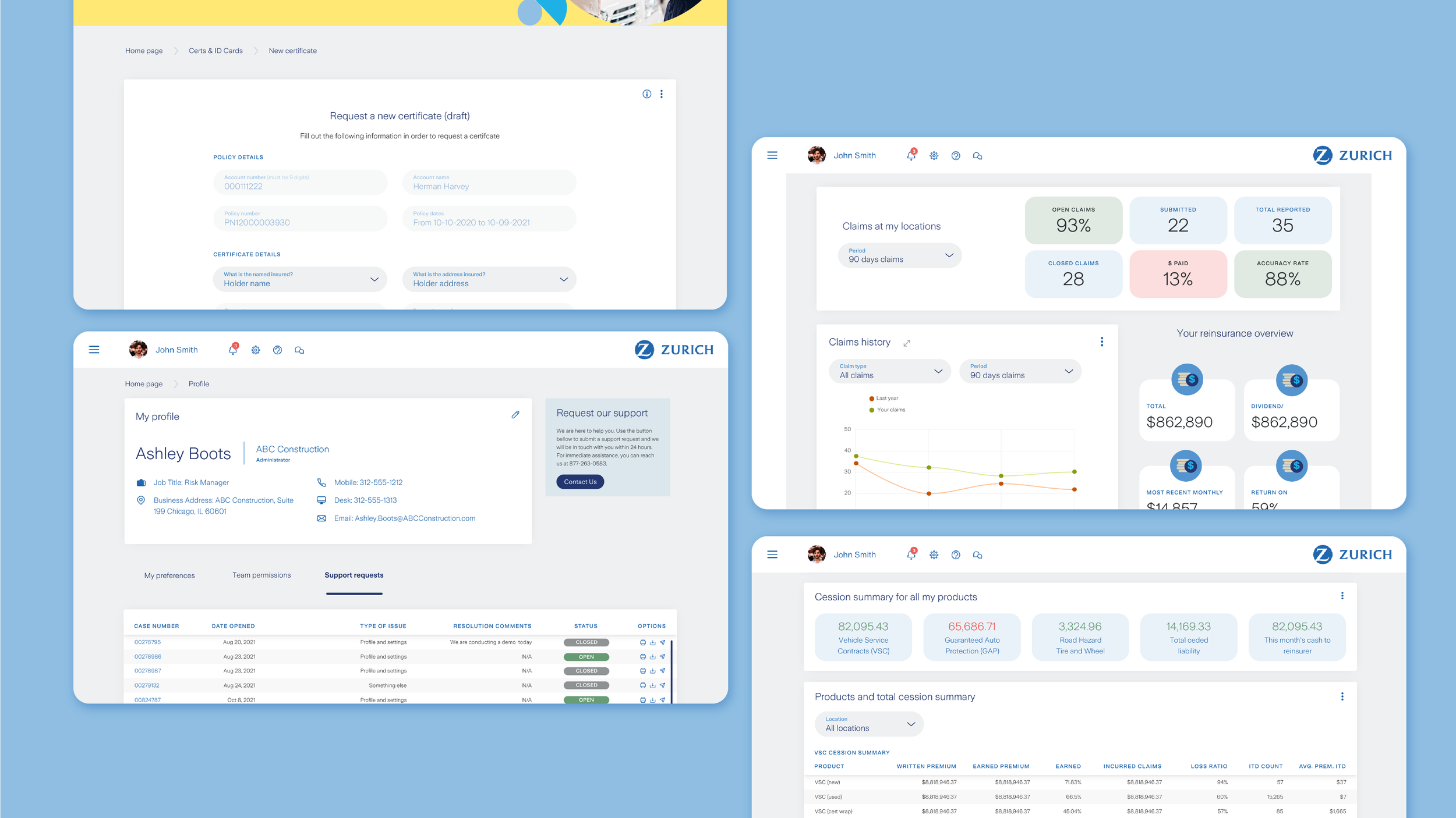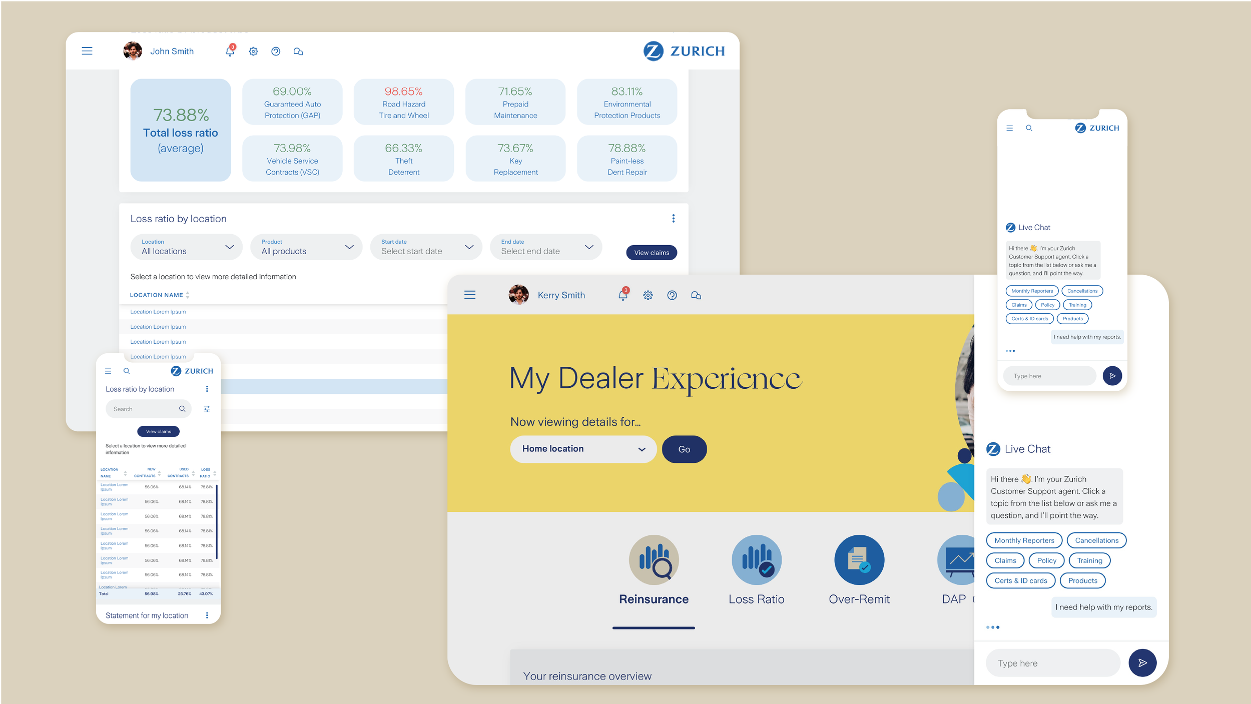 The dealership portal is the point of contact not only for all dealership owners working with Zurich, but for the Zurich brokers as well. It needs to be a no-frills website that has easy access to the data-heavy areas that these individuals access on a daily basis, while meeting the needs of the many user roles accessing this platform.