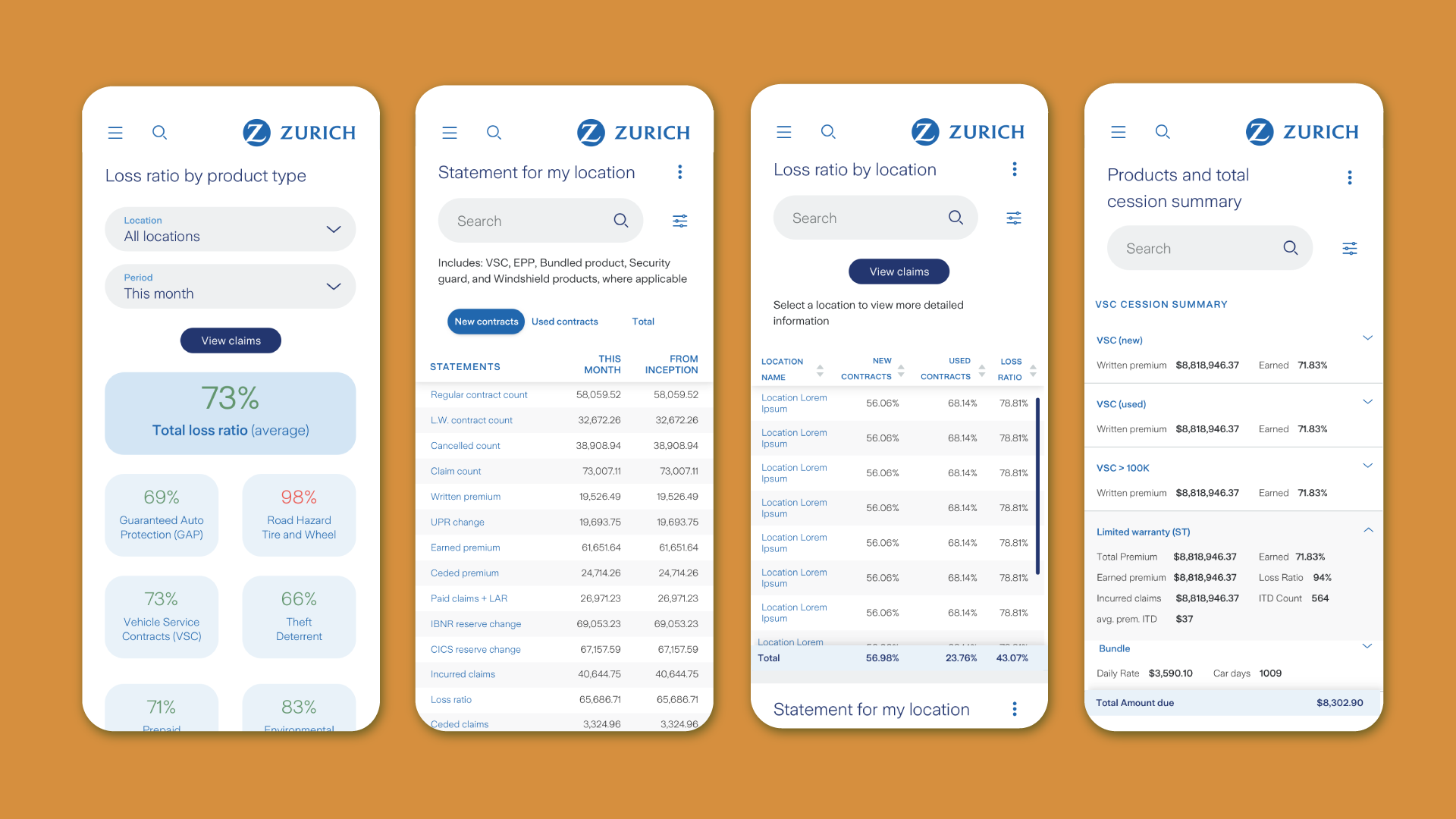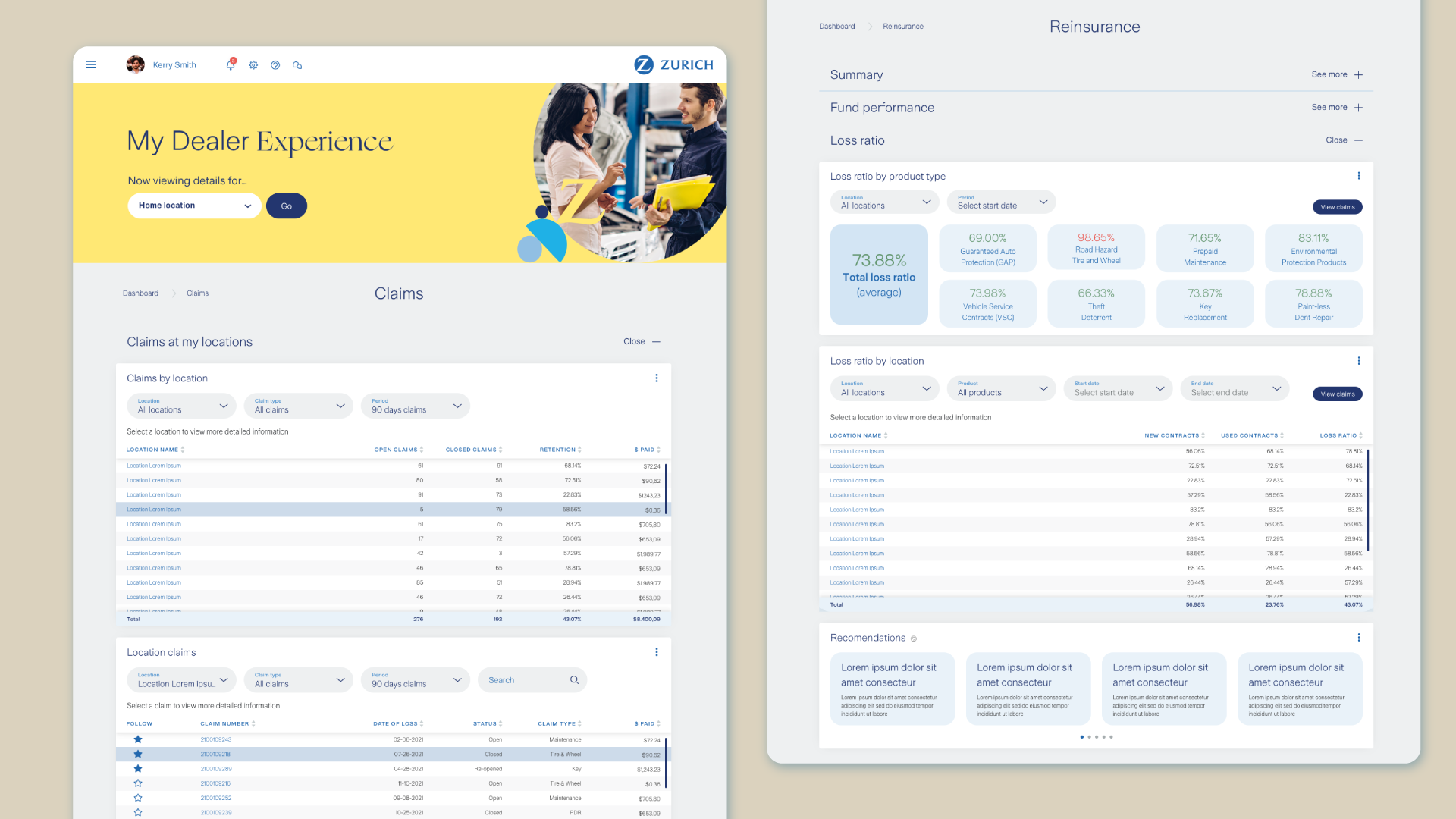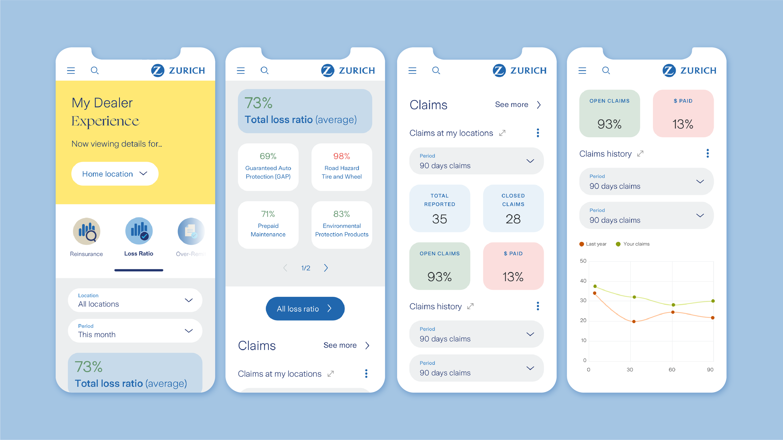 Dealership owners and brokers using multiple platforms a daily basis needed a single point of contact... Streamline the workflow and create a responsive version that allows them to access their daily work on the go? Let’s go. Newly created UI features fed into newly implemented Zurich Design System to be used globally.